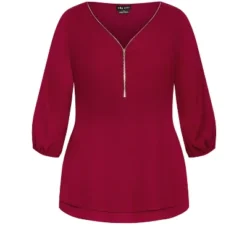 Women’s Plus Size Sexy Fling Elbow Sleeve Top – Ruby| CITY CHIC