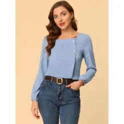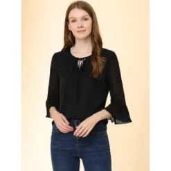 Allegra K Women’s Elegant Satin Long Sleeve Office Work Blouses Tops