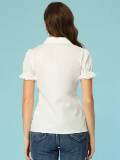 Allegra K Women’s Doll Collar Short Sleeve Button Down Shirt