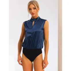 Allegra K Women’s Mock Neck Stretch Slim Fit Short Sleeve Sheer Mesh Ruched Blouses