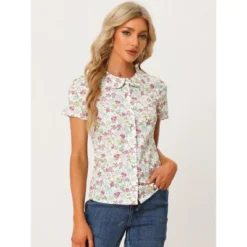 Allegra K Women’s Summer Peter Pan Collar Shirts Button Front Vintage Floral Print Blouse