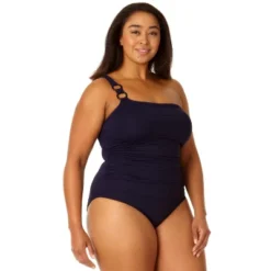 Anne Cole Plus – Women’s Ring Strap Asymmetric One Piece Swimsuit