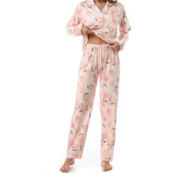Cheibear Women’s Sleepwear Lounge Solid Nightwear With Pants Soft Long Sleeve Pajama Set