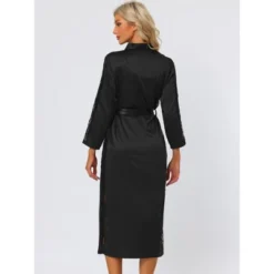 Cheibear Women’s Satin Robe Lace Trim Long Sleeve Bridesmaid Gown Bathrobe