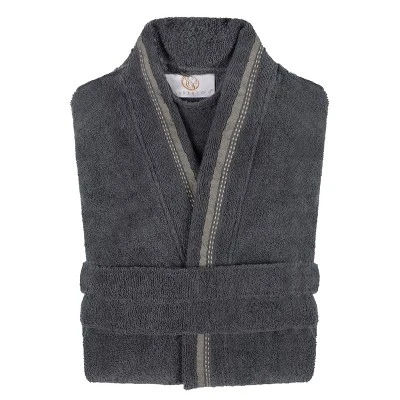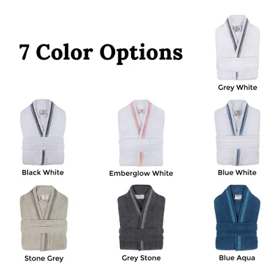 The Sabrina Unisex Cotton Lounge Bathrobe with Embroidery All-Season Robe is the perfect bathroom essential for year-round comfort. Crafted from a premium Cotton material, this coordinated bathrobe exudes luxury and sophistication for any master bath, powder room or guest bathroom. For comfort and durability, each bathrobe provides a versatile absorption, ideal for the shower, bath or beach. This bathrobe is made with a dobby weave construction and a colored embroidery design that will match with any modern, traditional, or classic style. Our robes are OEKO-TEX Certified to meet environmental and safety standards.