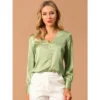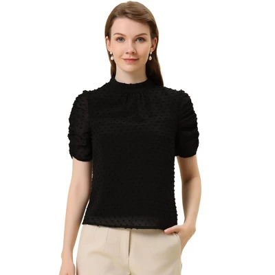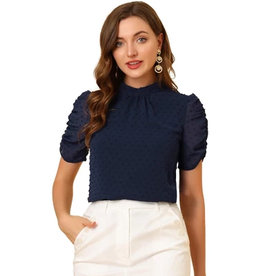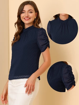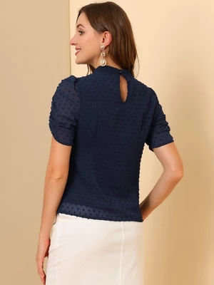 Allegra K Women’s Elegant Swiss Dots Puff Short Sleeves Stand Collar Chiffon Blouse