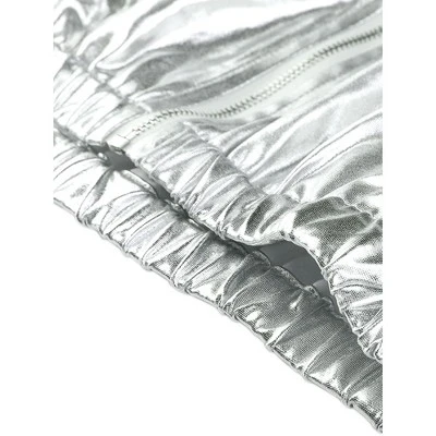 Allegra K Women’s Holographic Shiny Long Sleeve Zipper Hooded Metallic Jacket