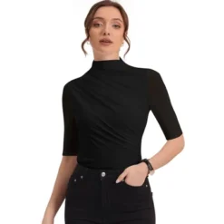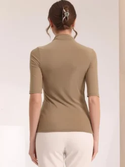 - This mock turtleneck short-sleeved top has a cozy lining to keep you warm on cooler days