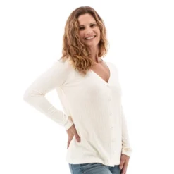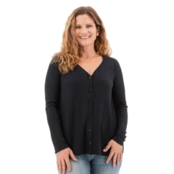 When you think of your favorite long sleeve top, do you think of Fair Trade Certifiedâ„¢ production and silky, sustainable TENCELâ„¢ Modal? If you answered yes, the Corolla Top is made for you! Versatile and perfect for layering, this full button front is ready for your creativity to take over. Wear it as a top either with a tie at the bottom front or as a cardigan. This lightweight piece will pair with casual, work, and dinner outfits. We love the V-neck design and the texture this top adopts from a variegated rib knit. Enjoy both of these features for years to come thanks to the strength and durability of TENCELâ„¢ Modal.