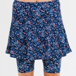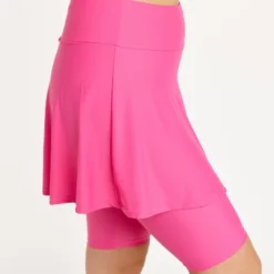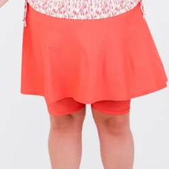 The Midi Swim Skort is flattering on all body types thanks to its high waist design and mid-thigh length skirt. Complete with a wide waistband for a slimming effect and attached leggings hit you right above the knee for added coverage.
