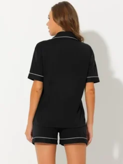 This loungewear pajama set for women is constructed of soft fabric, which is comfy, breathable, and skin friendly, and makes the pajamas convenient to take on/off, keeping you pretty and comfortable all day. Featuring tops with short sleeves and notched lapel and pants with elastic waist design, it makes you feel cozy all night, and enjoy a comfortable sleep and sweet dream. No matter the cozy bedtime, casual home relaxation, laze afternoon, or comfy bath, the soft and lightweight women’s nightdress could accompany you all the time. This lady’s set is perfect for slumber parties, pajama nights, or daily wear or as a holiday gift for Mother’s Day, Thanksgiving, Christmas, or birthday. Notice: Wine Red and Navy: 95% Rayon, and 5% Spandex, which is more stretchy and soft