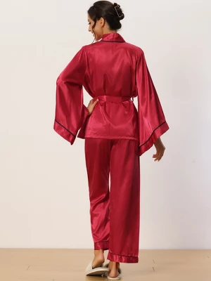 Great for loungewear, nightwear, sleepwear, home bedroom, and daily wear. This loungewear robe with pants for women is constructed of super smooth satin fabric, and comfy, bell sleeves with an adjustable self-tie outer belt, making it convenient to take on/off and keeping you pretty and comfortable all day. This pajama set is casual and classy style, even if guest visits suddenly, you won’t feel embarrassed, making your home life more convenient.No matter the cozy bedtime, simple home relaxation, laze afternoon, relaxing bath, the soft and lightweight sets could company with you all the time. This elegant set is perfect for slumber parties, pajama nights, or daily wear or as a holiday gift for Mother’s Day, Thanksgiving, Christmas, or birthday gifts.
