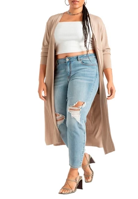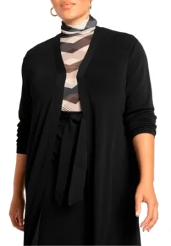 Throw on sweater duster Easy and relaxed fit Matte/viscose/nylon yarn Long side vents Midi length-below knee Length on model is 45″ Models are size 14 and range in height from 5’8″-5’10″80% Viscose / 20% NylonCare: Machine wash cold, gentle cycle with like colors. Only non-chlorine bleach when needed. Do not tumble dry. Lay flat to dry. Cool iron as needed.