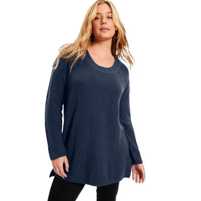 This effortlessly easy scoopneck sweater pairs well with all your favorite denim, with long sleeves and side slits. Finish the look with boots or sneakers.