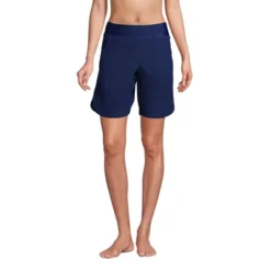 When it comes to summertime fun there’s no time for costume changes. That’s why you’ll love these Lands’ End Women’s Quick Dry Elastic Waist Modest Board Shorts Swim Cover-up Shorts. Made from UPF 50 fabric you can wear them for added sun protection on long days at the beach pool or lake. They’re also made from a quick dry water-repellent fabric. High waisted wide elastic waist band provides modest coverage in front and back eliminating self-conscious tugs. And the handy side and waistband pockets hold whatever essentials you need. Machine wash with easy care instructions.