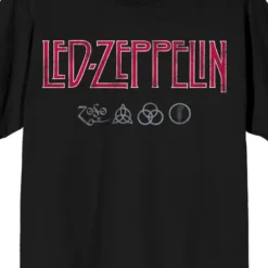 Rock and roll in style with this Led Zeppelin tee. The shirt features distressed red letters that spell out the band’s logo while gray symbols from the band appear below the text. The tee comes in a black short sleeve crew neck. Led Zeppelin fans will love this comfy cotton t-shirt.