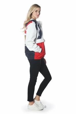The MO Jungle Print Pullover Oversized Jacket is a quirky addition to your jacket collection. Created with breathable fabric that is also durable for protecting from the wet weather. Features such as the adjustable drawcord hood, side zipper on the bottom hem and mesh lining enables the wearer to put on the jacket effortlessly. The animal print is exclusively available on this women’s pullover. Choose this vibrant jacket to amp up all your wardrobe choices.
