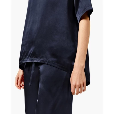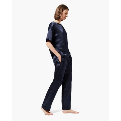 A luxurious pajama essential, our incredibly soft crewneck features a relaxed body and wide short sleeves. A drawcord offers a customizable cinch at the waist. Whether you’re lounging in the country or slumbering in the city, this shorty set is on-trend and will keep you comfortable during warm summer nights. Elevate your sleepwear game by choosing Mommesilk’s pure silk pajamas, silk pajama sets, robes, camisoles, chemises, and nightdresses.