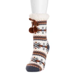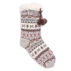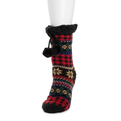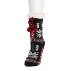 Cozy and warm, MUK LUKS® Women’s Tall Cabin Socks are the best for when temps drop. Sweet knits pair with ultra-soft faux fur to create a warm, comfortable sock you wonÂ’t want to take off. Machine wash cold on gentle cycle, no bleach, tumble dry low heat. Imported.- Non-Skid PVC Dot Sole – 93% Acrylic, 7% Polyester Knit- 100% Polyester Faux Fur Lining- Pom and Tassel Detail- Multiple color options available- US Women’s Sizes S/M (5-7), L/XL (8-10)