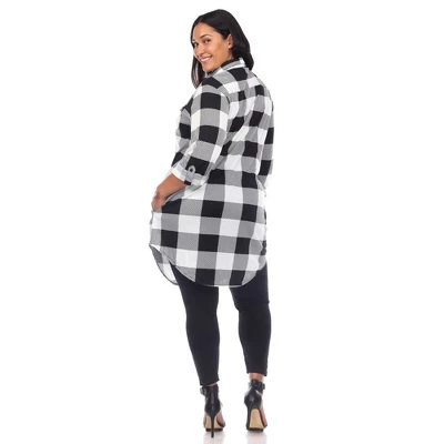 You’ll love the relaxed fit and tunic length of this classic button-up shirt that’s always ready for the weekend. Our button-front tunic is soft, light, and has an allover yarn-dyed woven plaid pattern. Long sleeves with buttoned cuffs roll and tab to 3/4 length. Available in both missy and plus size.