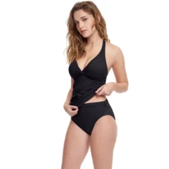 Profile by Gottex, as the halterkini spectacular stunner drapes every curve with distinct shirring to conceal. A plunging v-neckline with underwire and removable soft cups and halter straps adjust for appropriate support. Instantly shape your level of sexy with side shirring.