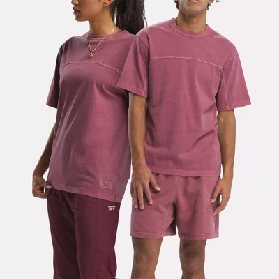 A new wash on your favorite Reebok t-shirt. Made of soft cotton and colored with a natural dye, it has drop shoulders that gives it a chill look. Put it on to hang out with friends or lounge around at home.