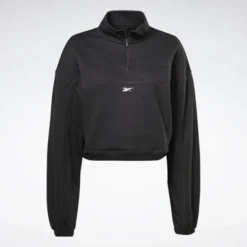 Layer this women’s Reebok sweatshirt over a tee and you’re all set for a trip to the gym a walk with the dog or whatever the day has in store. The quarter-zip style is made in cozy French terry with a casual loose fit. A stand-up collar fends off chill winds.