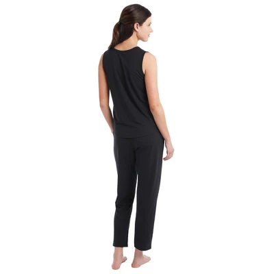 - 2pc set includes built up tank top and matching pants with 28 inch inseam and an adjustable drawstring waist tie