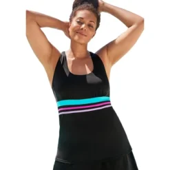 Swimsuits For All Women’s Plus Size Chlorine Resistant Crossback Tankini Top