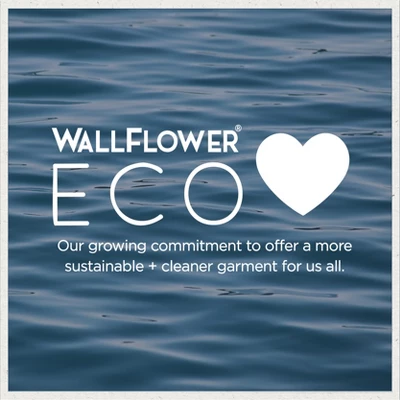 - ECO LOVE: WallFlower’s growing commitment to offer a more sustainable products & cleaner garments for all of us. We are on a journey to craft garments that are more mindful by using cleaner processes, recycled paper tags and more eco materials.