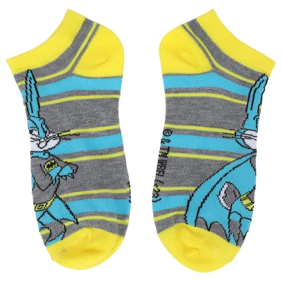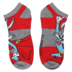 - CUSTOM DESIGN: Images of Bugs Bunny dressed up like Superman, Batman, Fred from Scooby Doo and other cartoon characters decorate these ankle socks. Fans of the Looney Tunes cartoons will love these fun designs.