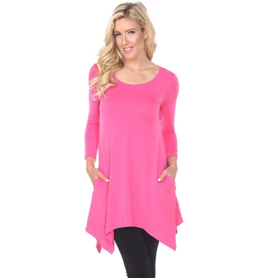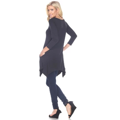 Add the right touch to your outfit with this elegant top tunic by White Mark. Features a glimmering v-neckline embellishment, short sleeves, and a shark bite hem. The tunic top is made from super soft and stretchy fabric that is nice and glides to your skin when you wear them. Pairs perfectly with leggings or jeans.
