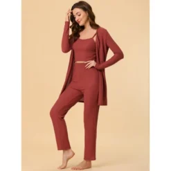 Made from soft stretch knit fabric, this pajama will keep you comfortable all night long.This pajama set is included a cami top, long pants and a long cardigan.It is great choice for your mother, wife, girlfriend, sister and daughter as a gift for Birthday Party, New Year, Valentine’s Day, Christmas, Bridal Party, Honeymoon Vacation, etcGreat choice for Casual Daily, Nightwear, Sleepwear, Boudoir, Holiday and Lounge Wear set.