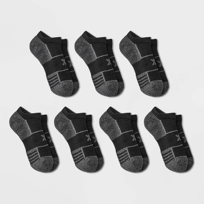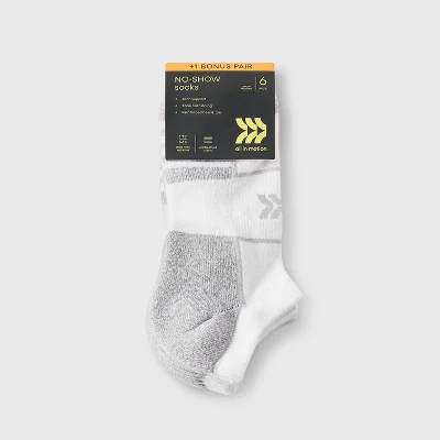 Six + one bonus pair pack of athletic socks made from a moisture-wicking, midweight fabric blend with ventilating mesh helps keep your feet cool, comfy and dry. Arch support, reinforced heel and toe, Y-heel stitching and zone cushioning round out the comfortable fit. Plus, the no-show style makes them easy to wear with a variety of shoes.