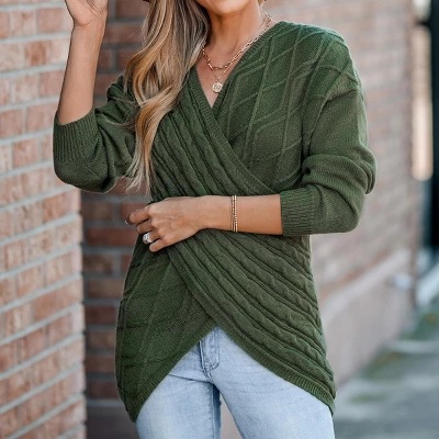 Wrap yourself in cozy style with our Cable Knit Wrap Sweater from Cupshe. Featuring a surplice neckline, long sleeves with dropped detailing. The classic cable knit design and wrap silhouette create a chic and comfortable piece that’s perfect for adding a touch of texture and warmth to your winter wardrobe.Product code: CAA06A3J042RR