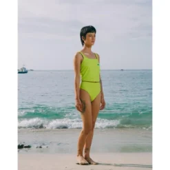 MIGA Swimwear’s Colette Tankini Top in Lime Green is designed with supportive shoulder straps, provides moderate support and comes with a pocket detail for an easygoing look. This pullover style is made with sustainable SPF50 fabrics that protect you from UV rays. Pair with the Colette Bikini Bottom and Colette Swim Skirt for a complete neon look. MIGA Swimwear surveyed over 400 women, including members of the disability community, to find their favorite styles. All of their swimsuits are made sustainably in the USA.