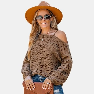 Indulge in warmth and style with this Coffee Cutout Crochet One-Shoulder Sweater from Cupshe, featuring a single cami strap with long puff sleeves, the rich brown hue reminiscent of your favorite coffee. This sweater’s unique cutout crochet design and alluring one-shoulder silhouette make it a standout piece for those who appreciate both fashion and comfort.Product code: CAA06A3H035HH