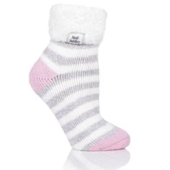 Only available in this size at this time.The same warmth and comfort as the ORIGINAL™ Heat Holders® Crew sock, but in a shorter ankle length with pretty feather turn over cuffs! Ideal for sleeping at night. Wrapped in a decorative ribbon, these sleep socks make a thoughtful gift! Keep feet warm on the coldest of nights and pull on this pair of feather cuffed, ankle length Heat Holders® for women, the warmest thermal sock.Thick, chunky and with a massive tog rating of 2.34, Heat Holders® are made from a specially developed heavy bulk yarn which has extreme thermal qualities. With long pile cushioning, these thermal socks will help keep feet fully comfortable and supported.The inside of each sock has been intensively brushed such that they not only feel sensationally soft but also trap warm air close to the skin keeping your feet warmer for longer.Heat Holders® are non-binding; they are also diabetic friendly and provide relief for cold feet due to circulation problems.