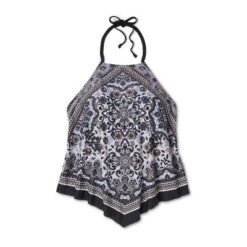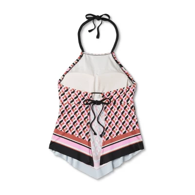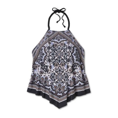 Take on sunny outings in elegant style with this High-Neck Tankini Top from Kona Sol™. A lovely medallion pattern adorns this tankini top, creating a romantic look you’ll love, and the high-neckline and sharkbite hem add to its elegant style. Thanks to the removable cups, you’ll have customizable coverage for confident wear, and the behind the neck and back tie-closure help make finding the right fit easy. Add matching bottoms for a cohesive look, or change things up with coordinating solid color bottoms to keep your swim style top notch.