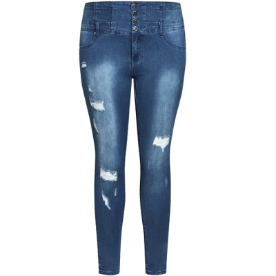 Women’s Plus Size Asha Rip Corset Jean – Light Denim | CITY CHIC