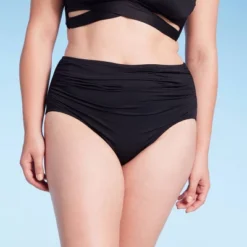This Shirred High-Waist Full-Coverage Bikini Bottom from Shade & Shoreâ„¢ is the perfect mix of comfort and chic style. Made from soft fabric with spandex and a full lining, this brief-style bikini bottom provides flexible movement in and out of the water. It features a high rise, full-coverage design for confident wear, and the shirred construction adds extra visual appeal.