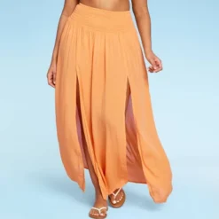 This Smocked Waist Double Slit Maxi Skirt Cover Up Dress from Kona Sol™ is as pretty as it is practical. This cover-up maxi skirt features a smocked waist along with two high slits to create a super stylish look. Made with lightweight fabric for comfortable wear that’s ideal for after-swim lounging or drinks by the pool, this cover-up skirt makes the perfect pick to layer over your swimsuit.