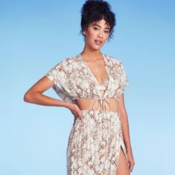 Stay in style while flaunting your standout look by wearing the Tie-Front Short-Sleeve Cover-Up Crop Top from Shade & Shore™. This short-sleeve cover-up top features snake print in tan and cream hues for an elegant look. The deep V-neckline with tie front elevates the look, while the 100% rayon fabric provides all-day comfort. Simply pair it with the snake-print bottom to complete the look.