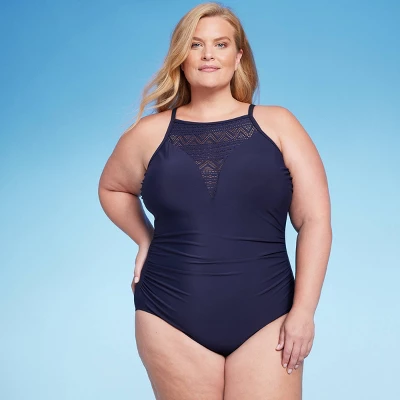 Look no further for the perfect swimsuit, think elegant meets chic in this jaw dropping one piece. The high neckline of this swimsuit has a subtle and alluring crochet inset front and center to create a ornate and contemporary look. This one piece swimsuit is complete with removable cups and adjustable straps for a customizable fit and full modern bottom coverage.