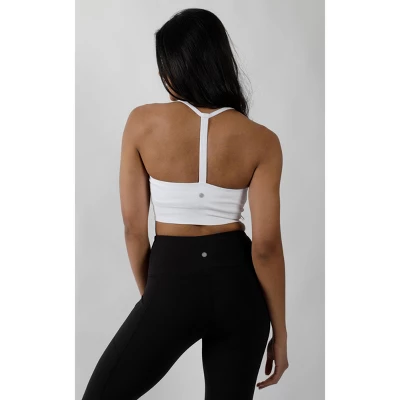 This medium impact bra is designed with a compression fit to hold your chest down while jumping, running or stretching. This athleisure bra will keep you in place through any physical activity. The seamless material provides additional support and overall comfort. This V-neck bra is made with four-way stretch fabric to move with you and allow a full range of motion.